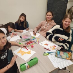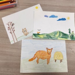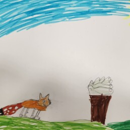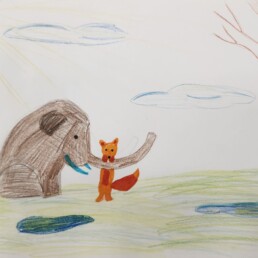 Далее ребята попробовали себя в роли иллюстратора к доброй сказке про маленького лисёнка «Постричь мамонта!» Игоря Фарбаржевича.