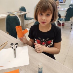 А на следующей неделе воспитанники узнали, что от дружбы красного и жёлтого цветов рождается оранжевый – дополнительный цвет. Этот колорит всегда тёплый, в противовес синему, поэтому они и находятся в цветовой круговой диаграмме диаметрально друг другу. Однозначная понятливость оранжевого цвета позволила без труда распознать его особенности: несколько несерьёзный, праздничный, сказочный, задорный, весёлый, мифический и всегда радостный.