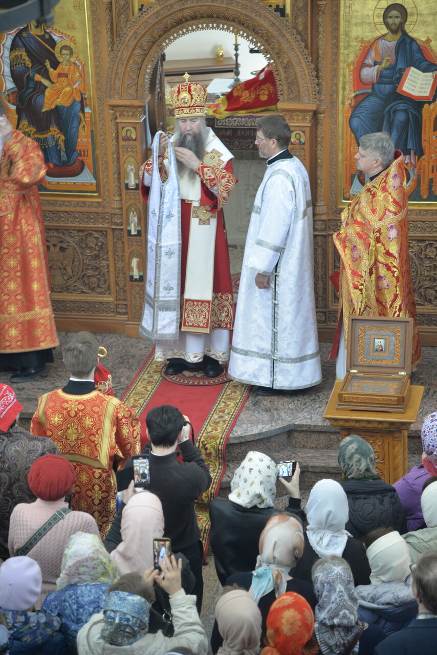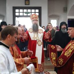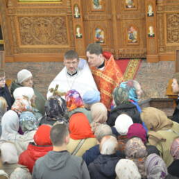 В завершение богослужения Его Преосвященство обратился к молящимся с архипастырским словом. Владыка призвал верующих научиться жить в ощущении присутствия рядом Живого Бога, все свои поступки соизмерять не с мирскими веяниями, а с Христовыми заповедями. «Не всем это удаётся сделать быстро, но у Бога и малое принимается, – ободрил он собравшихся в храме. – И малое слово, и дело может сыграть большую роль в духовной жизни каждого человека».