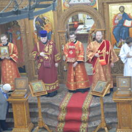 – правом служения Божественной литургии с отверстыми Царскими вратами по «Иже Херувимы» – клирик Спасского храма г. Долгопрудного протоиерей Александр Телешев;