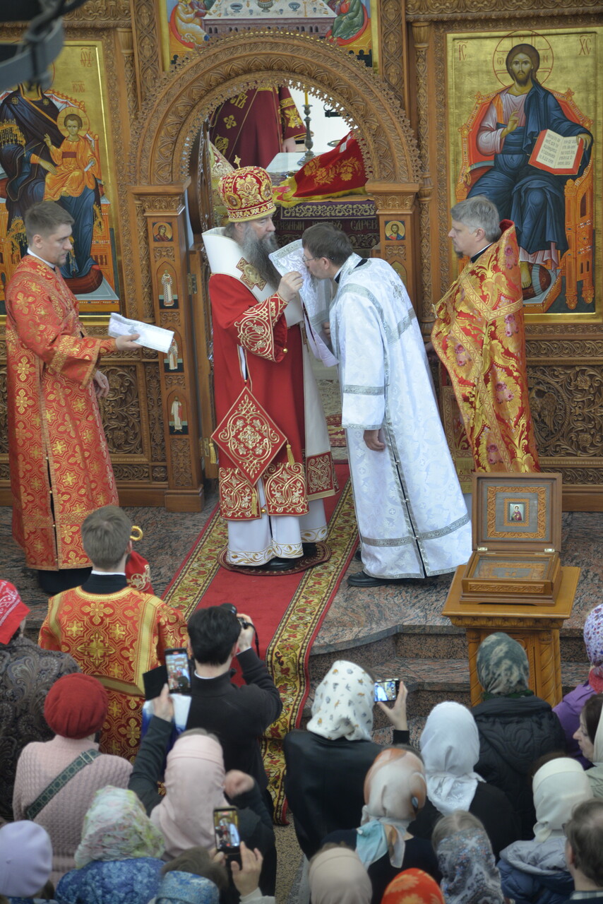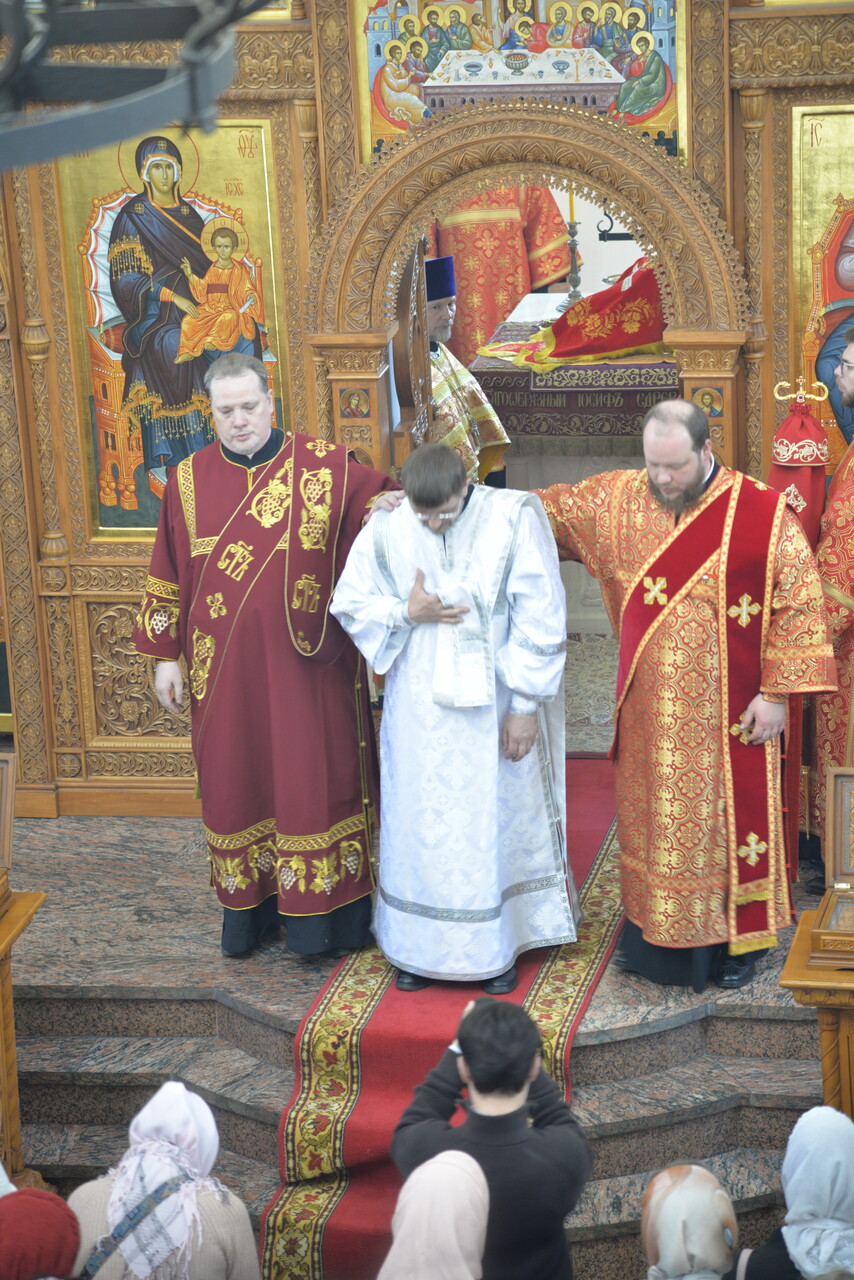 За Литургией владыка рукоположил клирика Покровского храма г. Долгопрудного диакона Александра Нестерова в сан пресвитера.