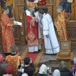 На малом входе несколько клириков Долгопрудненского и Королёвского благочиний были удостоены богослужебно-иерархических наград.