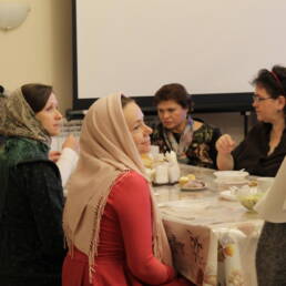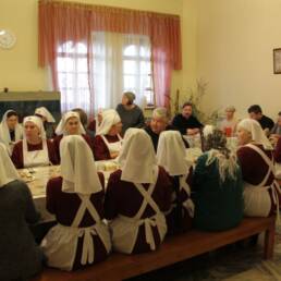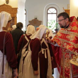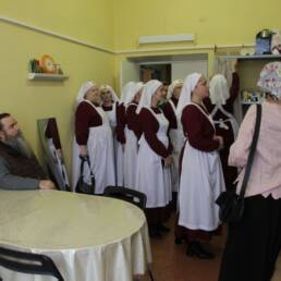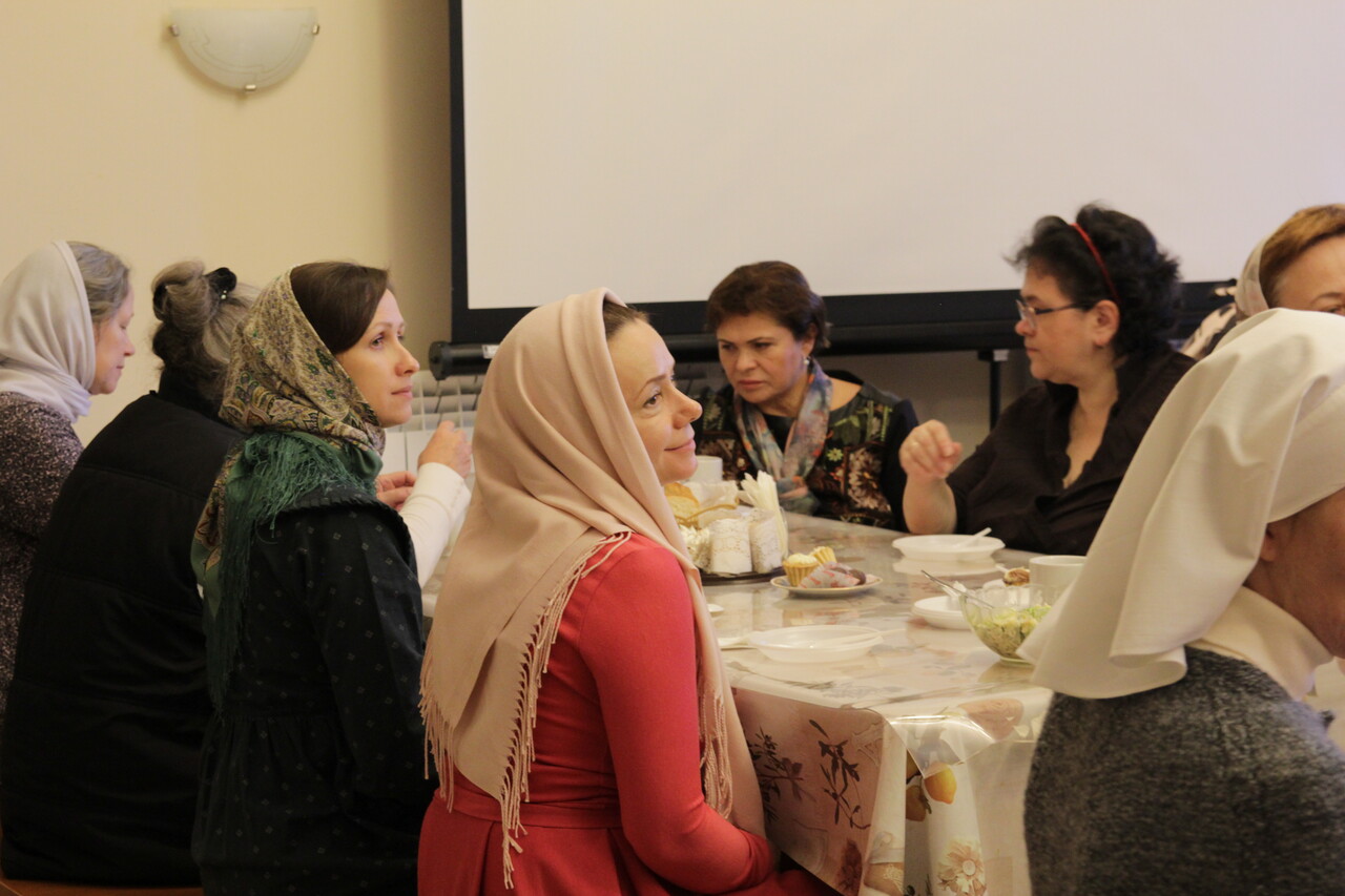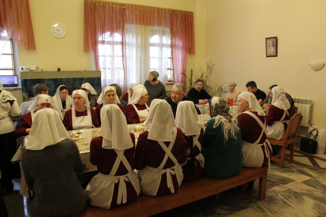 За совместной трапезой сёстры и добровольцы в дружеской обстановке смогли ближе познакомиться, рассказать о своём служении милосердия, поделиться опытом. Был организован просмотр видеосюжета о направлениях и проектах волонтёрского движения в Долгопрудном. Протоиерей Александр Суворкин провел экскурсию по приходскому комплексу, рассказал об истории храмов.