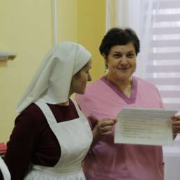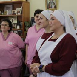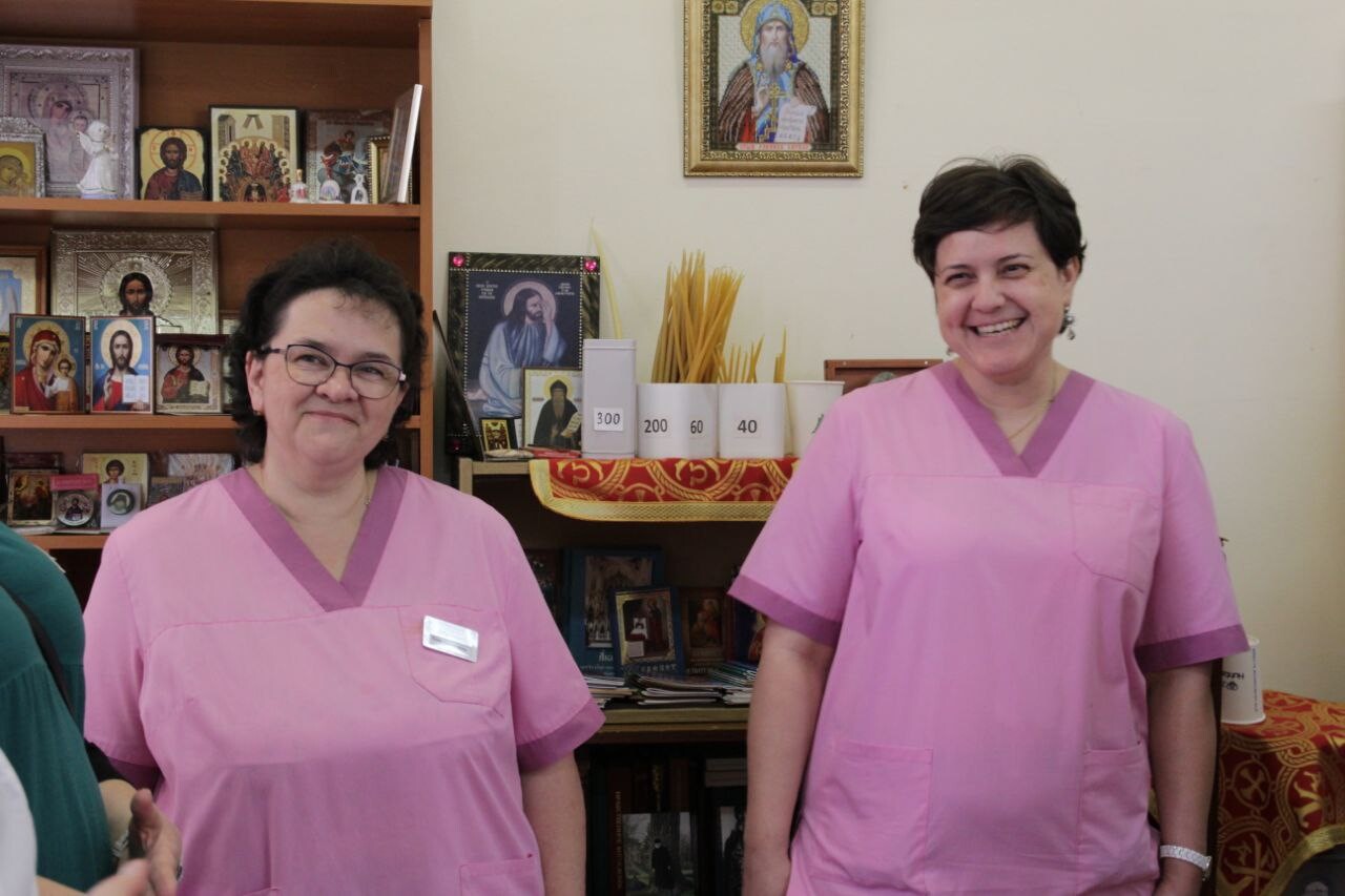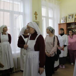 Затем гости направились в Долгопрудненскую городскую больницу, где посетили молельную комнату во имя святителя Луки Крымского, выставку картин «Зарисовки путешественника», посмотрели сестринскую комнату добровольцев и учебный класс.