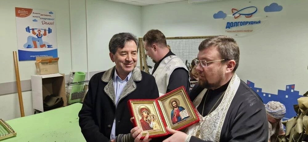 Отец Александр передал участникам мероприятия благословение и приветствие благочинного Долгопрудненского церковного округа протоиерея Андрея Хмызова, окропил изделия, которые помогут защитить защитников Родины в зоне СВО. Также на молитвенную память труженицам образа Спасителя и Пресвятой Богородицы.